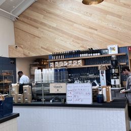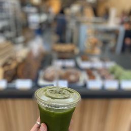The Kouign Aman and ham and cheese croissant were outstanding. Fresh, laminated dough baked to perfection with quality ingredients. Although cashiers were not forward in helping, they were nice throughout transaction. Baristas never made eye contact, maybe because they were ashamed to give me my coffee; it was the worst coffee I've ever purchased. My Americano was so watered down and disappointing. The heart in the foam gave me hope until the first sad sip. How can you sell this as coffee? The pastries are sublime. Coffee is awful. Perhaps you can reevaluate the coffee you are using or the machines. Maybe even the ratio you are using. It was like dirty brown water. We were both disappointed in the coffee. Good thing the pastries were superb.
