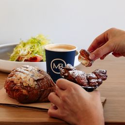 For those looking for a cozy spot to enjoy pastries and coffee, Manresa Bread offers a clean, modern ambiance with plenty of outdoor seating. Their pastries, like the corn cheddar scone and ham n cheese croissants, are of high quality and pair perfectly with a cappuccino or drip Verve coffee.